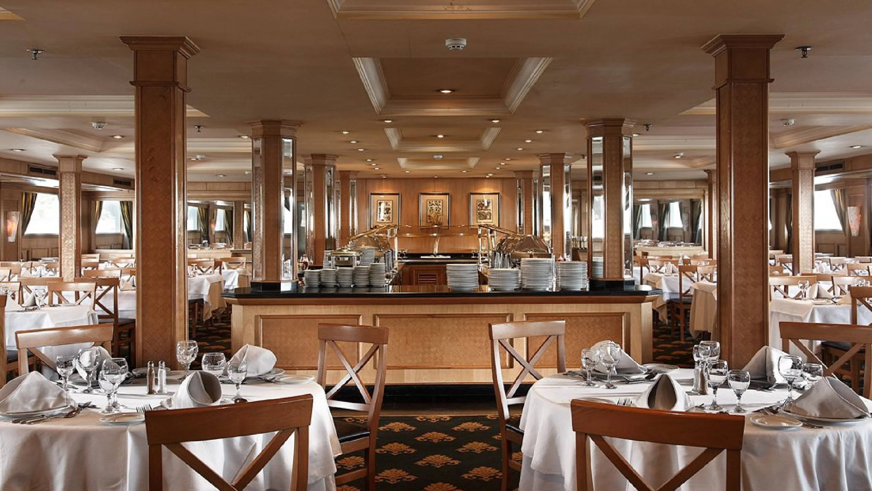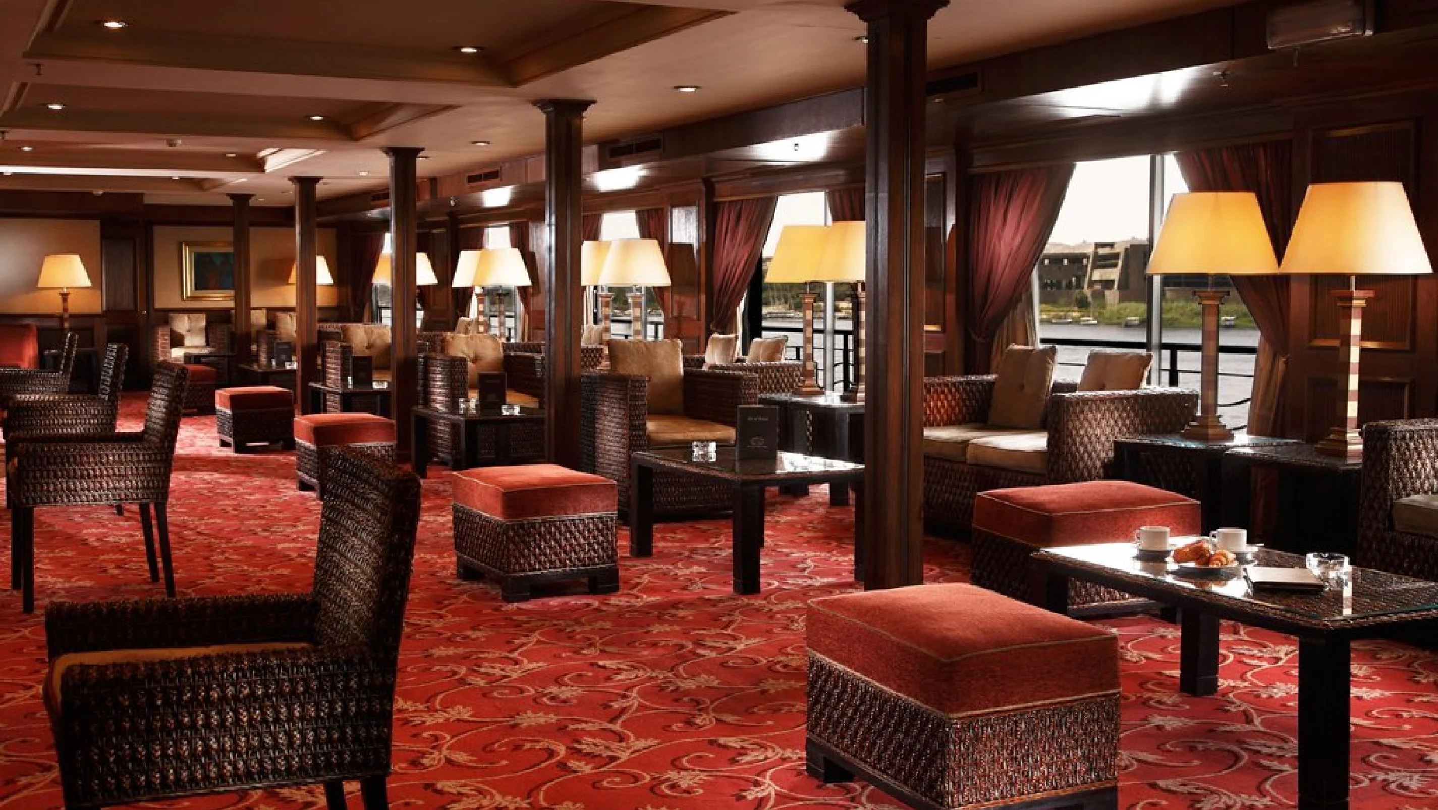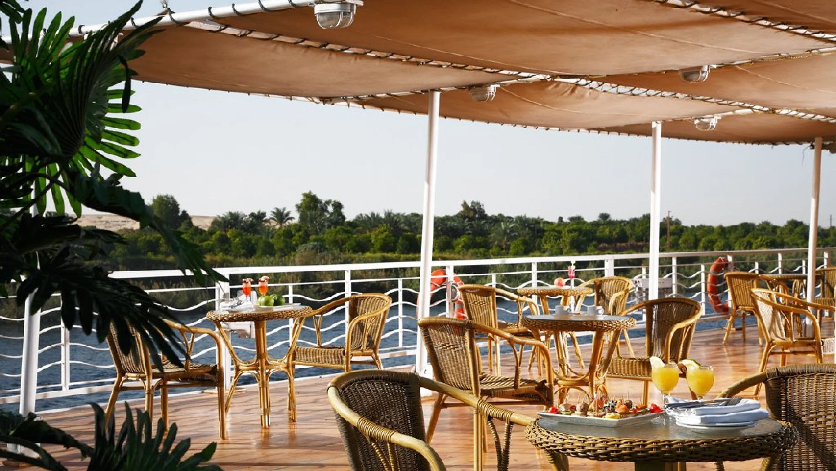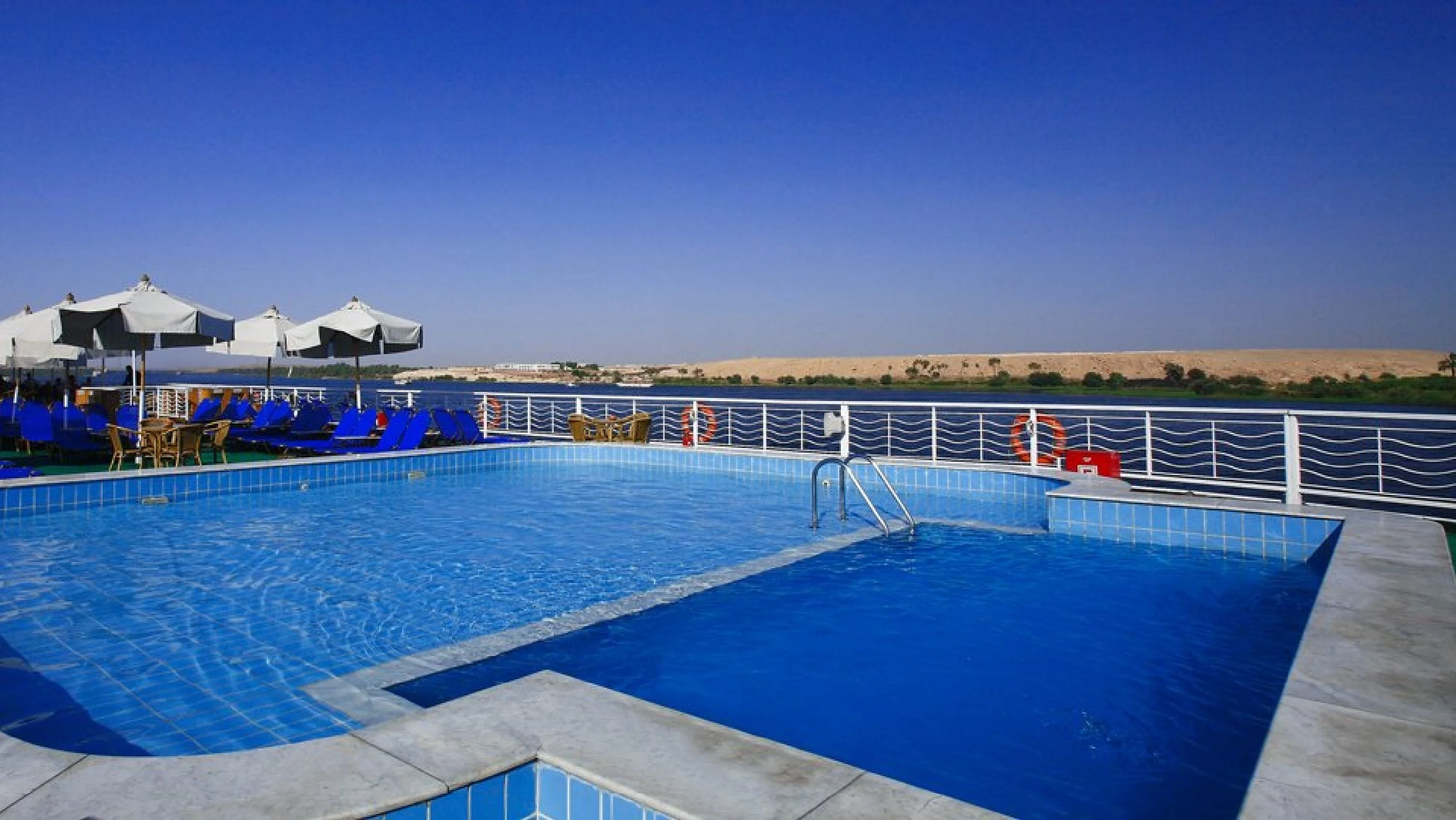 Le navi sul Nilo sono piuttosto strette (circa 11 metri di larghezza), quindi le cabine sono tutte esterne, disposte ai lati di un corridoio centrale e affacciate sul fiume. Dispongono di finestre apribili in stile French balcony.
