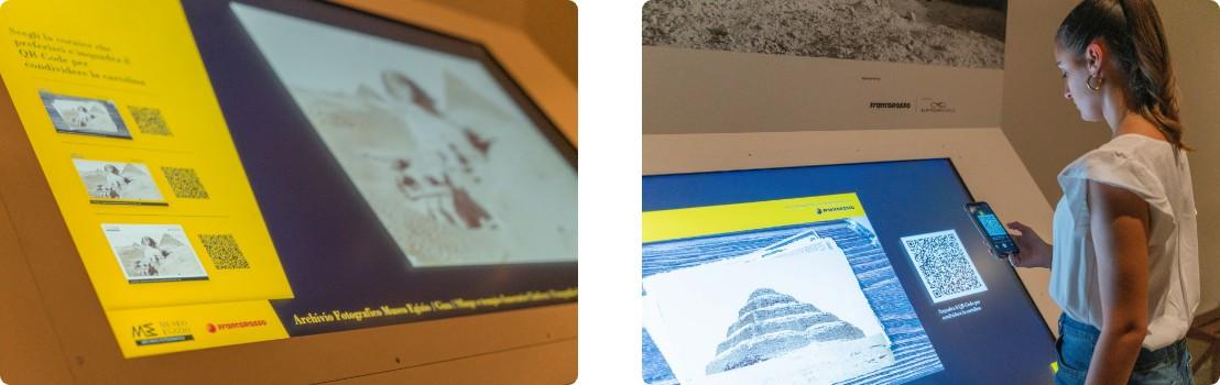 L'archivio fotografico del Museo Egizio è costituito da circa 45000 immagini, tra lastre fotografiche su vetro o celluloide, diapositive e stampe Otto/Novecentesche. Il recente lavoro di digitalizzazione, riordino e analisi, permette oggi a tutti di consultare online le immagini degli 11 siti studiati dagli archeologi agli inizi del Novecento. Grazie a Francorosso anche i visitatori potranno consultare questo immenso patrimonio documentale, attraverso delle postazioni interattive digitali, ricontestualizzando così i reperti visibili nel percorso di visita e rivivendo una delle fasi più emozionanti della storia del Museo: le campagne di scavo. Per tutti i visitatori, sarà inoltre possibile condividere il ricordo di questo viaggio nel tempo inquadrando un QR code dedicato.