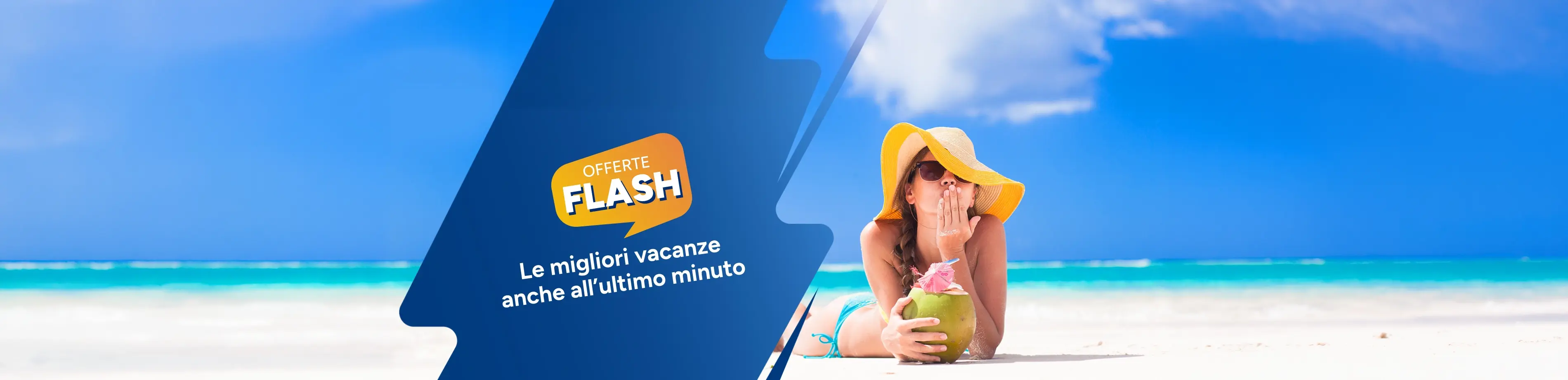 Se sei capitato in questa pagina è perchè hai un urgente bisogno di partire e sei alla ricerca della migliore vacanza anche all'ultimo minuto. Sei nel posto giusto! All'interno di questa pagina abbiamo raccolto le migliori promo flash con e senza volo. Potrai scegliere se partire per un weekend per scoprire sia le più belle destinazioni in Italia sia quelle a poche ore di volo, oppure puoi prenotare una vacanza di 7, 10 o 14 notti nelle più famose spiagge tropicali al mondo!