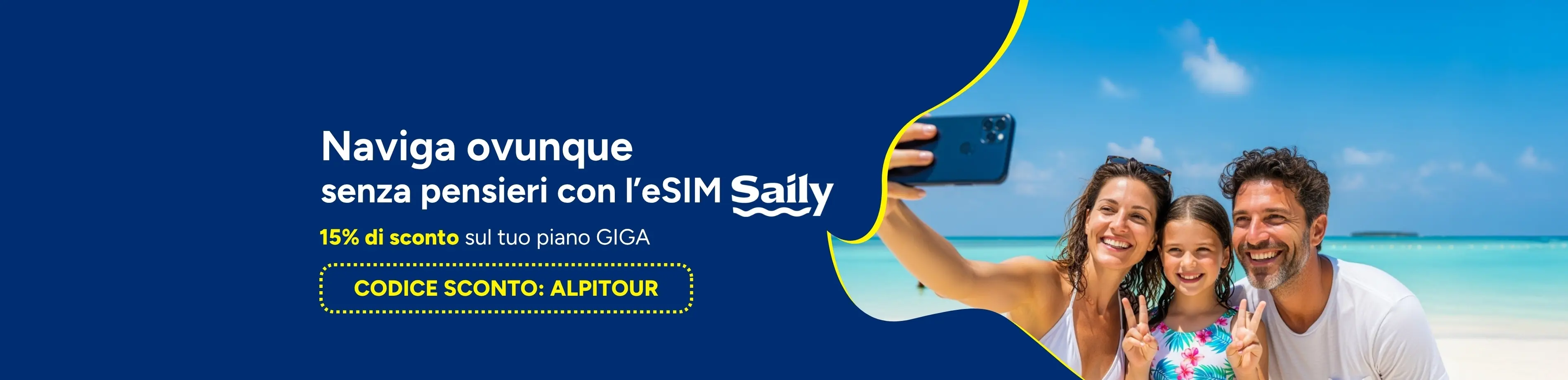 Inserisci il codice "ALPITOUR" sul sito o app di Saily e ottieni subito il 15% di sconto!
