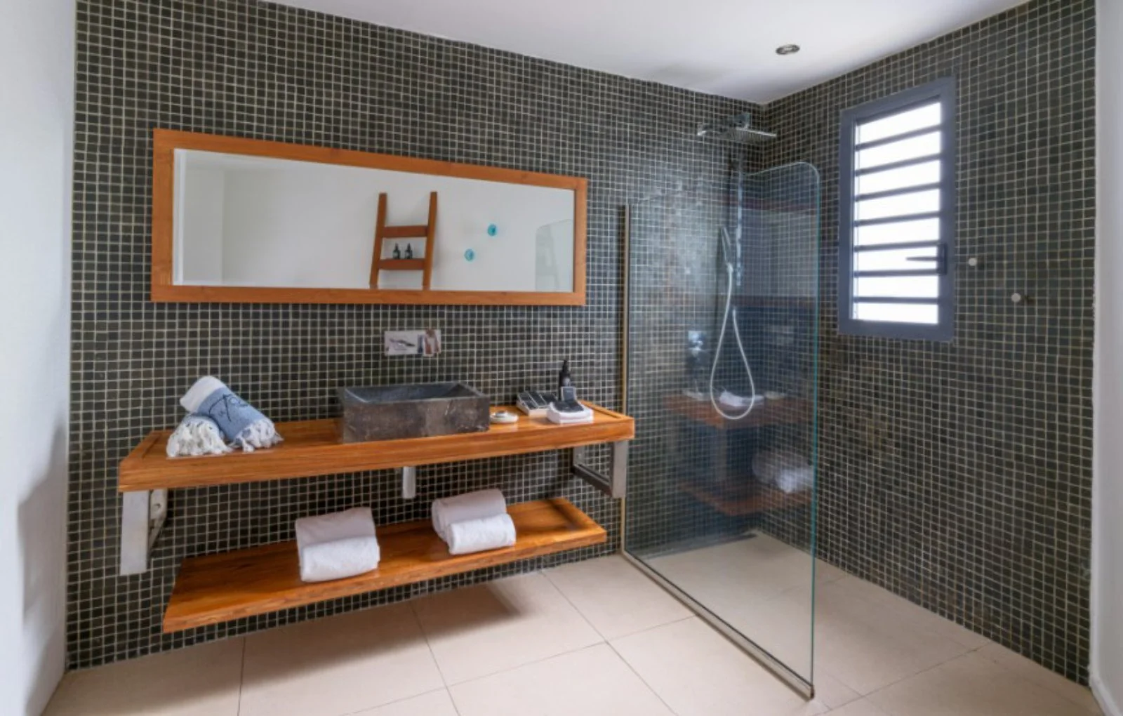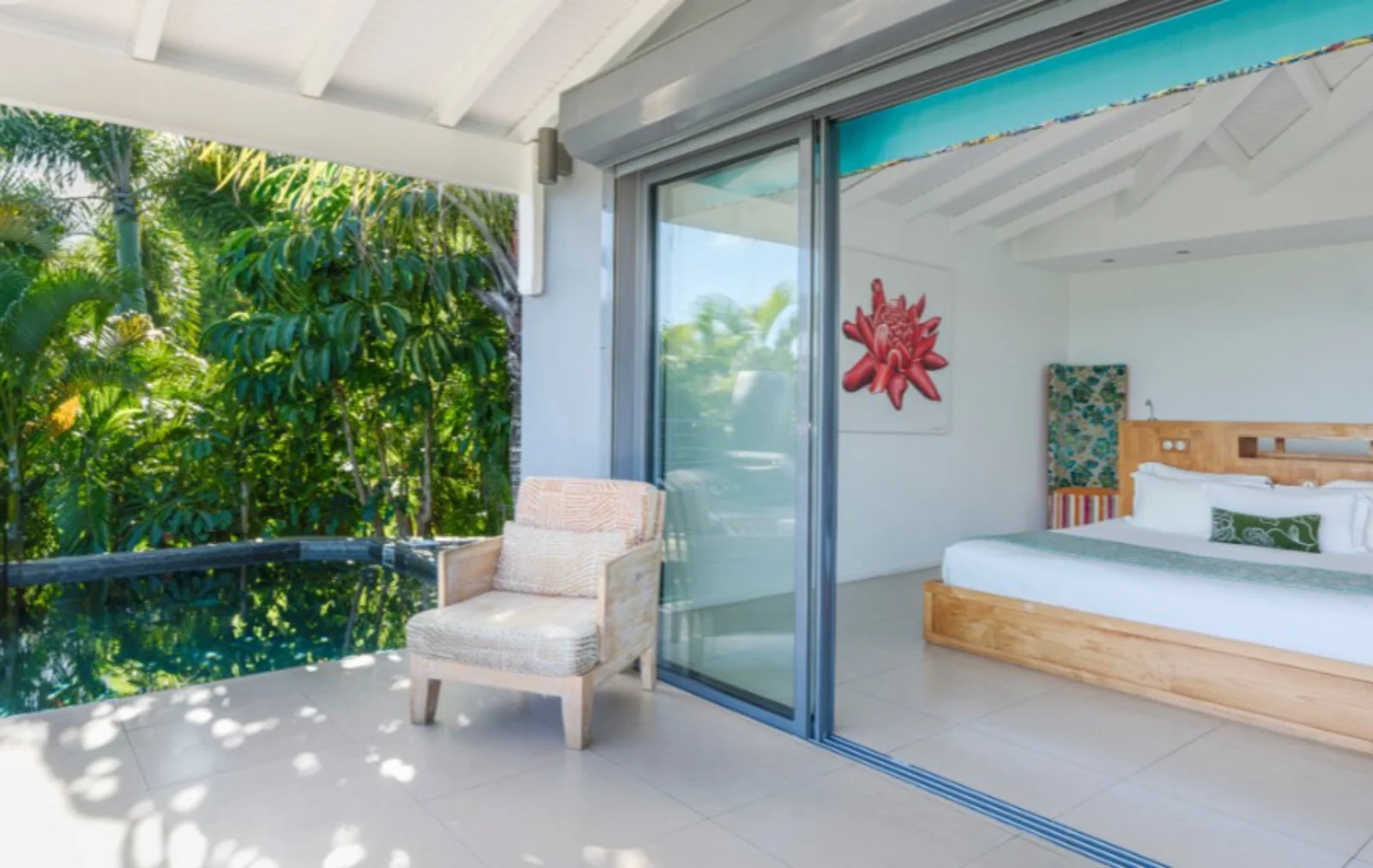Dispone di 32 bungalow, all'interno dei quali ci sono camere vista mare o vista mare parziale e di 12 suites in un giardino tropicale affacciate sul Mare dei Caraibi. Tutti i bungalow, inseriti in un giardino tropicale ricoperto di bouganvillea e ibisco, hanno letto king size con possibilità di aggiungere un letto addizionale per 1 bambino. Sono dotati di aria condizionata, internet Wi-Fi, telefono, televisore, cassetta di sicurezza, minibar, macchina per il caffè, servizi con doccia ed asciugacapelli, terrazzo attrezzato.