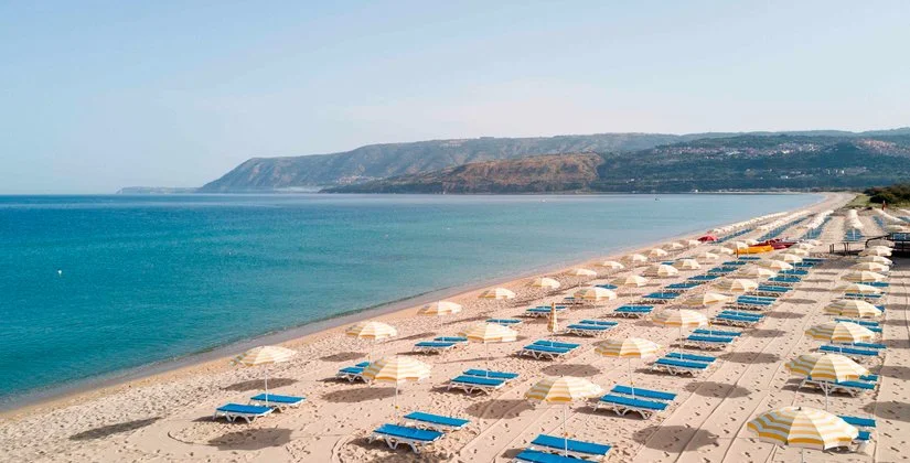 - spiaggia di sabbia attrezzata con ombrelloni e lettini