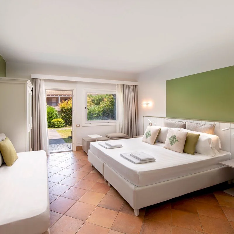 Nel cuore del resort, immerso nei colori dei giardini mediterranei e al centro di tutti i servizi.