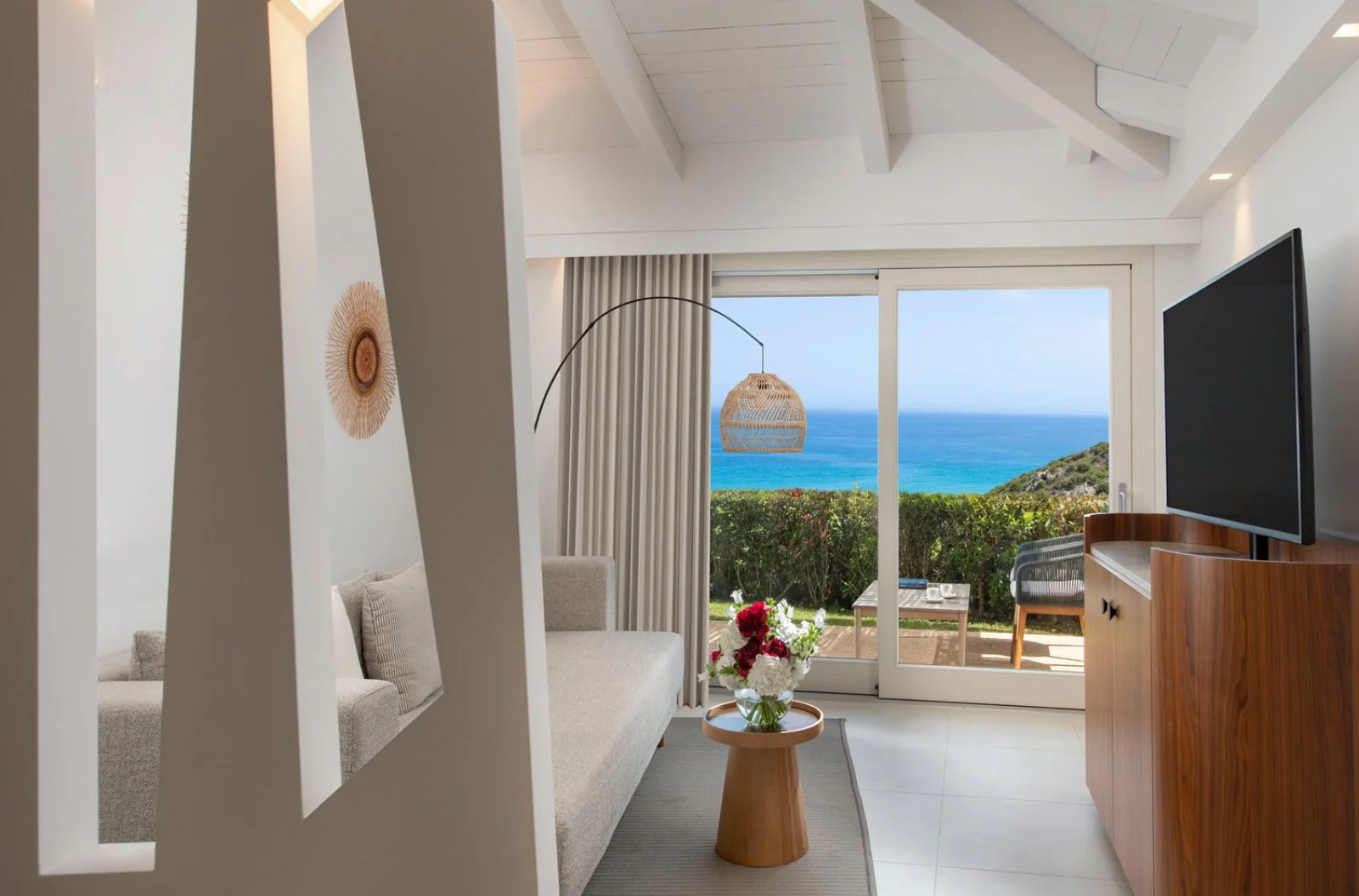 (44 m2) si compone di un salotto separato con divano letto e una camera privata con letto king size. Dispone di TV LED 55’’, una macchinetta del caffè, un bollitore per il tè, connessione Wi-Fi gratuita, asciugacapelli, aria condizionata, cassetta di sicurezza, terrazza panoramica vista mare. Culla, gratuita e su richiesta. Occupazione massima 3 adulti + 1 infant. A pagamento: consumazioni minibar. A pagamento: consumazioni minibar. Incluso nelle quote la 1a fila in spiaggia.