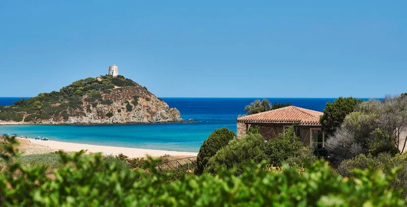 Situato in una posizione spettacolare a picco sul mare, il Baia di Chia Resort Sardinia Curio Collection by Hilton, offre una vista mozzafiato sulla spiaggia di Chia, ideale per una vacanza all’insegna della tranquillità e della riservatezza, immersi nella natura. Le camere sono circondate dalla rigogliosa macchia mediterranea del promontorio, mentre i servizi comuni si trovano ai piedi della collina. Il punto mare è un vero gioiello naturale: Monte Cogoni, una splendida lingua di sabbia dorata che si tuffa nel mare cristallino della baia, dominata dall’imponente Torre di Chia. Il resort dista 58 km da Cagliari.