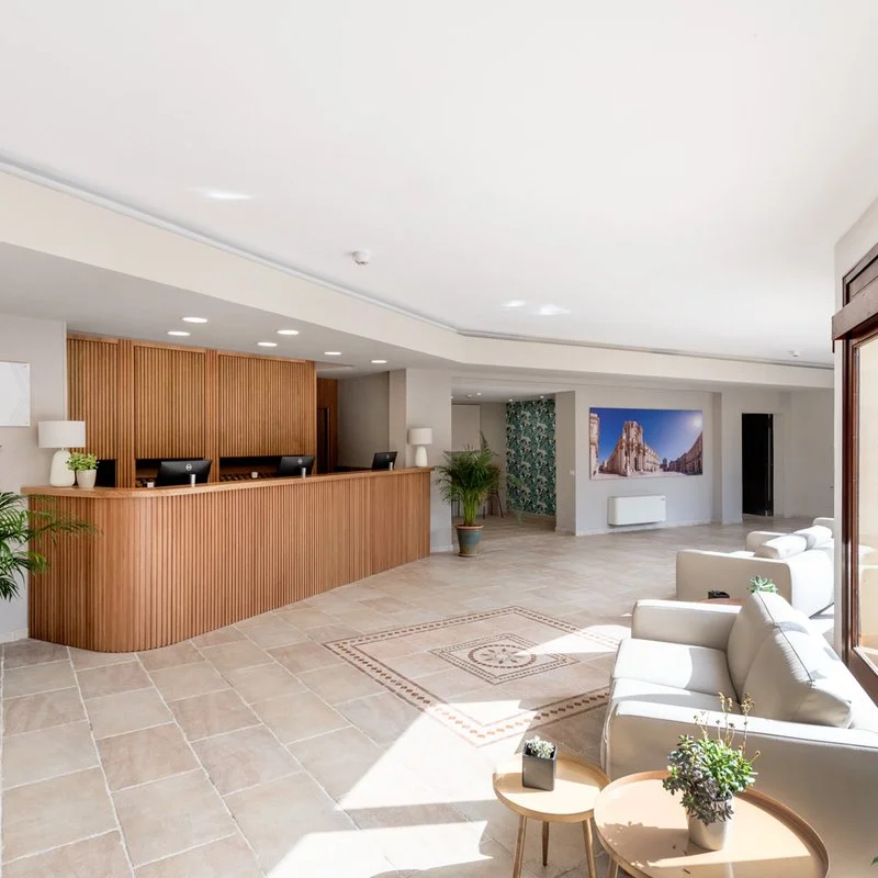 - Tipologie: doppie, triple, quadruple e family comfort, tutte rinnovate, doppie, triple e quadruple premium situate vicino ai servizi principali, superior (doppie e triple) con due ambienti e superior junior suite con zona living e giardino privato