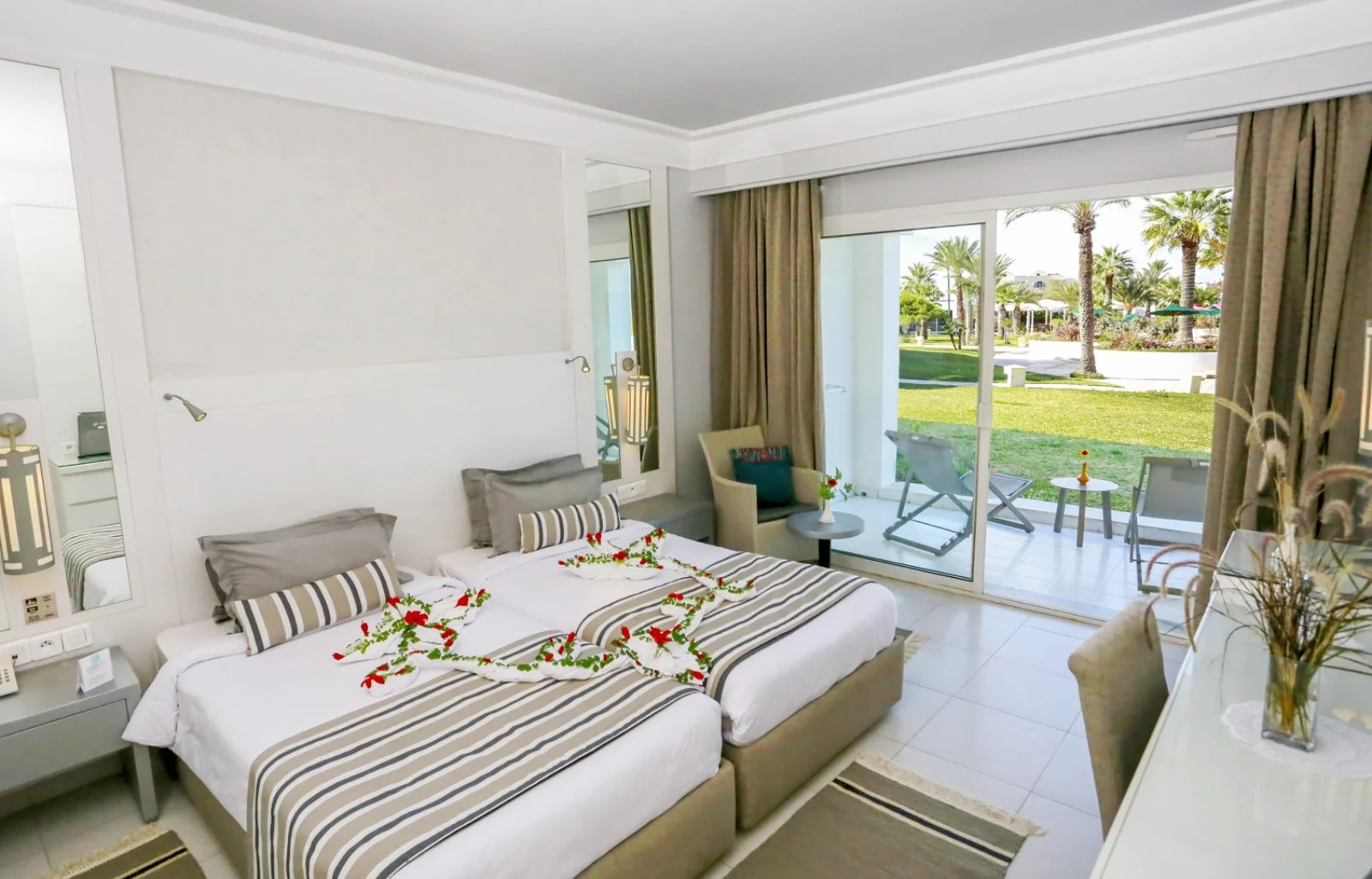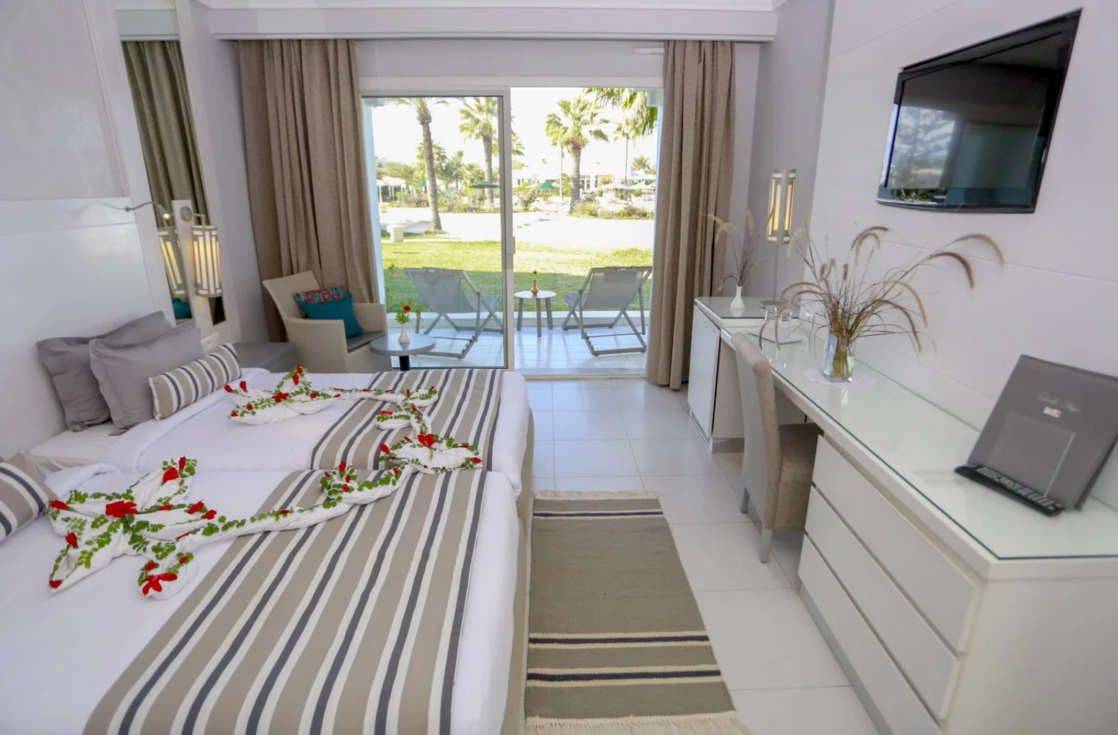 In posizione privilegiata, direttamente sul mare cristallino di Mahdia, questo resort è la scelta ideale per chi cerca relax e comfort. Situato a soli 3 km dal vivace centro città e a circa 50 km dall’aeroporto di Monastir, l’hotel si sviluppa su 4 piani e offre anche accoglienti bungalow immersi nel verde, perfetti per chi desidera maggiore tranquillità. L’accesso diretto alla lunga spiaggia di sabbia fine consente di vivere appieno il mare, mentre nelle immediate vicinanze si trovano negozi tipici e fermate dei mezzi pubblici, per esplorare comodamente la zona. Le principali città e gli aeroporti sono facilmente raggiungibili.